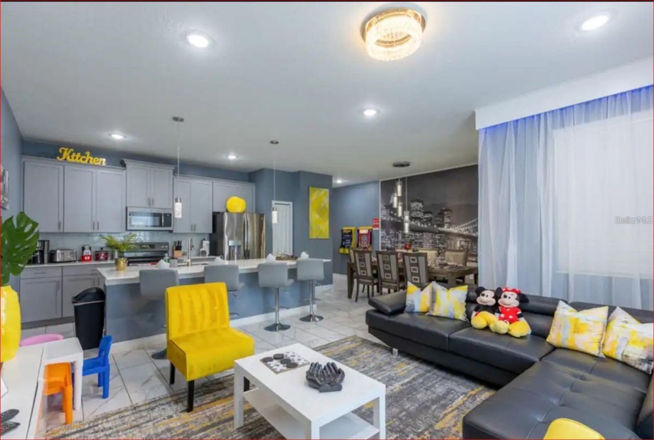 Excellent investment opportunity in the highly desirable Champions Gate Resort! Beautiful two-story FULLY FURNISHED townhome featuring 4 bedrooms and 3 bathrooms, open-concept living and dining area, and a large covered patio - perfect for entertaining or short-term rentals. Upgraded finishes throughout, including 42 maple cabinets, quartz countertops in kitchen and bathrooms, stainless steel appliances, faux-wood blinds, and a state-of-the-art security system. Short-Term Rental Approved! Start generating income immediately. Enjoy world-class resort amenities at the Oasis Clubhouse and Waterpark, featuring a lazy river, water slides, swim-up bar, cabanas, fitness center, movie theater, game room, tiki bar, and restaurant - all INCLUDED in the HOA! Located just minutes from Disney, shopping, restaurants, and golf courses. Perfect for investors, second-home buyers, or anyone seeking a profitable vacation rental in Orlando!