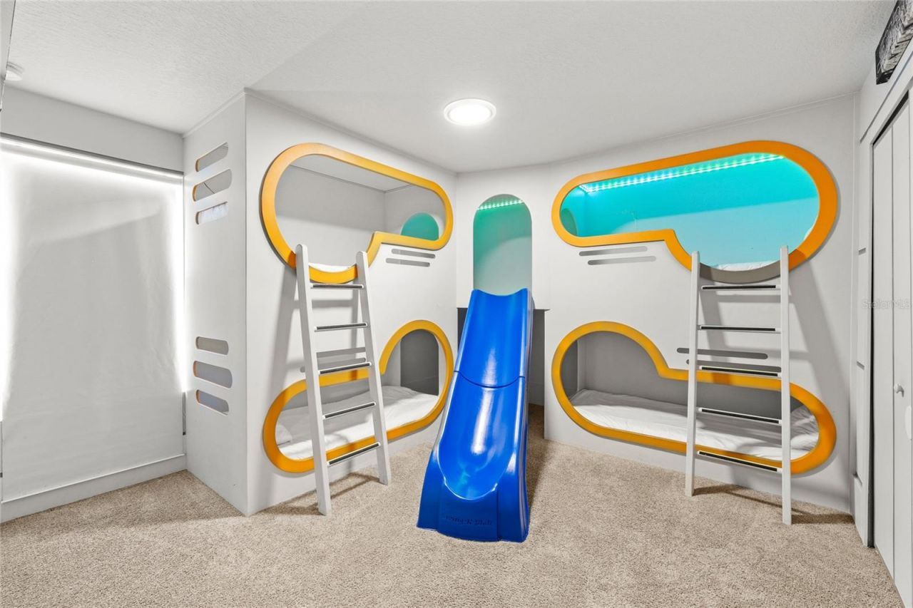 Fully furnished, themed, income producing vacation rental with a proven 4.8 star guest rating, designed to sleep 16+ guests and located just a short walk to the Oasis Clubhouse in ChampionsGate.Custom themed rooms create a true destination experience, including a HARRY POTTER inspired bunk room and a STAR WARS galactic cruiser style bunk room, both featuring slides, while the remaining bedrooms are intentionally designed with a more elevated, neutral feel so adult guests have a place to unwind.Designed for high occupancy and strong booking appeal, this 5 bedroom, 5 bathroom home offers over 3,000 square feet with an open concept main living area, multiple gathering spaces, and TWO primary suites positioned on separate levels for added privacy.The kitchen is finished with quartz countertops, 42 inch cabinetry, and stainless steel appliances, flowing directly into the living and dining areas and out to the covered patio, PRIVATE POOL, and spa. Upstairs, a loft provides additional flexibility as a secondary living space, allowing larger groups to spread out comfortably.Just a 10 minute walk to the Oasis Club, guests enjoy access to resort level amenities including a LAZY RIVER, resort style POOL, FITNESS CENTER, RESTAURANT, BAR, TENNIS COURTS, and more. ChampionsGate also offers quick access to I4, 429, and 417, placing Disney, Universal, and Orlando International Airport all within easy reach.