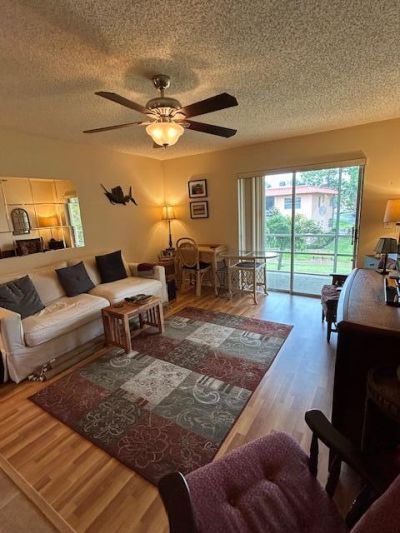 Welcome to Monterey Yacht and Country Club with UNLIMIED GOLF on Dye Family design course. The unit is close to amenities and overlooks the golf course. As you enter the unit through the glass/screen door into the foyer and close to the updated kitchen with replaced cabinets, sink was center to the window, tiled backsplash, laminated countertop plus workspace. White appliances. Tiled kitchen flooring, foyer, dining area and hall. Bathroom with tub/shower. Master bedroom has a walk-in closet and laminate flooring. Living room has laminate floor too. Sliding doors open onto the balcony which has 2 storage closets and great views.. Furniture is staying. Included is water, sewer, cable, wifi and use of the 2 clubhouses, putting green, pool, library, exercise room and more.