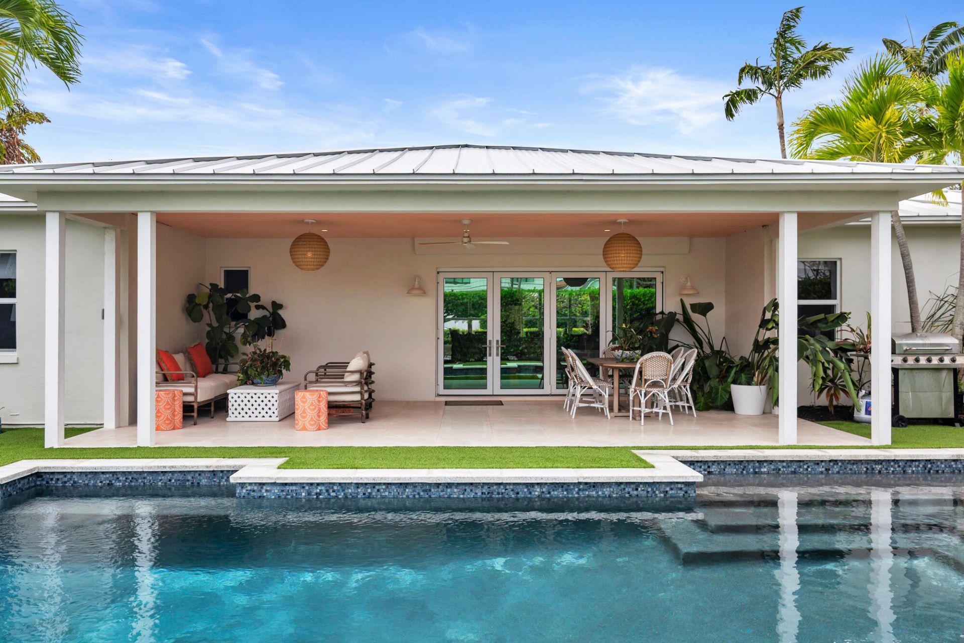 Tucked away on a coveted intracoastal block in SoSo, 225 Russlyn Drive is a beautifully renovated, move-in-ready retreat with 3 bedrooms and 3 bathrooms. Sitting on an oversized 10,890 SF lot stretching block-to-block, this property offers a sunlit front garden with endless curb appeal, along with a lush private backyard, large heated pool, and ample off-street parking including a 2-car garage. Inside, the foyer leads to a light-filled dining and living room that effortlessly blends indoor and outdoor living with nano sliding glass doors opening to an expansive covered outdoor loggia. The updated kitchen includes a charming breakfast nook, perfect for casual mornings, and large gas range, ice maker, and French door refrigerator ready for hosting larger gatherings. The desirable split floorplan provides a spacious primary bedroom and two guest suites, each with walk-in closets. With ample natural light and views of the lush gardens and sparkling pool from just about every corner, this home is an ideal West Palm Beach retreat. The east block of Russlyn Drive is the best of both worlds-the privacy and quiet of a cul-de-sac street with a dedicated easement to Flagler for easy access to the waterfront walking and biking path. Close to local beaches, Worth Avenue shopping, best in class restaurants, and top tier schools.