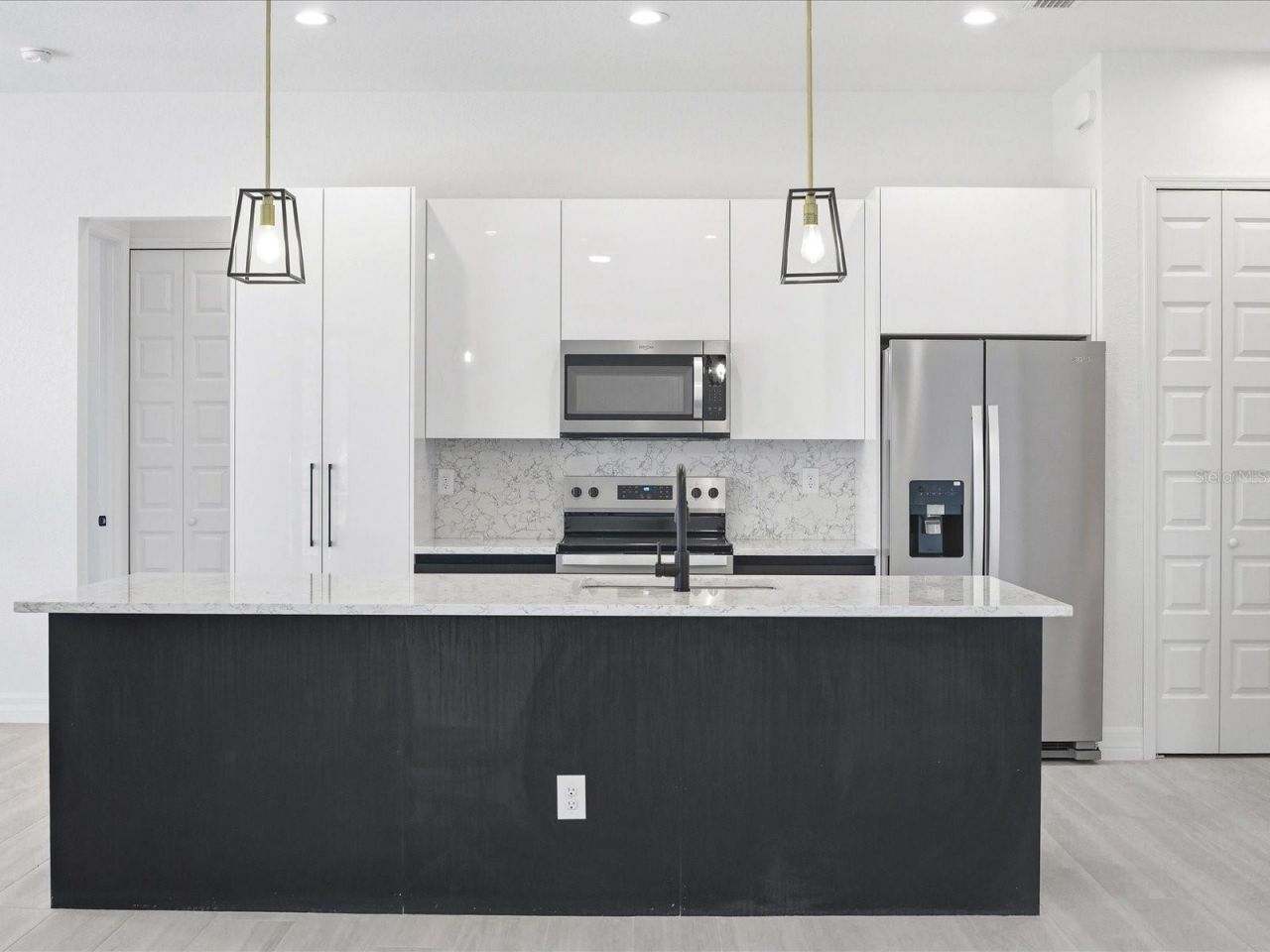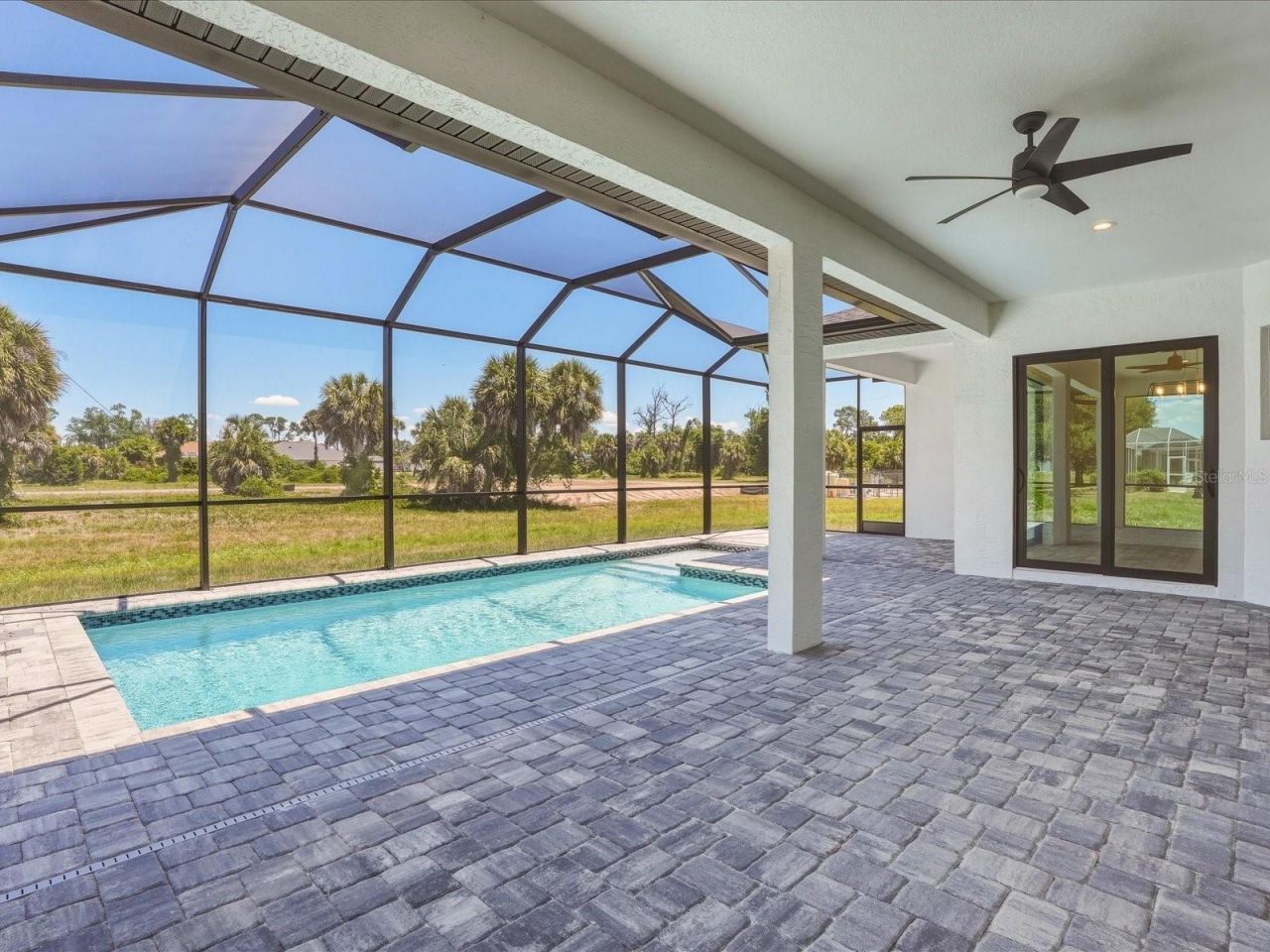 MOVE-IN READY | BRAND-NEW CONSTRUCTION | POOL HOME | IMPACT GLASS | 3-CAR GARAGE | LOW HOA. From the moment you arrive, this exceptional home makes a statement-featuring a coach-lit driveway, inviting front porch, and elegant double-door entry that set the tone for the quality craftsmanship found throughout.Located in the highly desirable Rotonda West golf-course community-just 11 minutes to Englewood Beach, this 4-BEDROOM, 3-BATHROOM, 3-CAR GARAGE residence was thoughtfully designed with no detail overlooked and no feature understated.Step inside to soaring volume ceilings, 8-foot doors, and a light-filled, open-concept layout. The Living Room showcases a dramatic tray ceiling with crown molding, recessed lighting, and a 6-foot ceiling fan, while a 3-panel sliding glass door opens seamlessly to the covered lanai-creating the ultimate indoor-outdoor Florida lifestyle. The formal Dining Area is ideal for entertaining, enhanced by dual sliding glass doors and ample space for a statement sideboard.At the heart of the home, the chef-inspired Kitchen impresses with a massive 9-FOOT ISLAND, TWO oversized 5-FOOT PANTRIES, high-end stainless steel appliances, tile backsplash, and solid wood, soft-close cabinetry topped with striking veined quartz countertops. Designer finishes, brushed nickel hardware, and on-trend shiplap accents-featured on the island, Living Room wall, and foyer-elevate the entire space.The split-bedroom floorplan offers privacy and flexibility. The luxurious Primary Suite features lanai access, tray ceiling, transom window, dual walk-in closets, and a spa-like en suite with an expansive tiled walk-in shower with dual showerheads, split quartz vanities, private water closet, and linen storage. A junior primary suite offers its own en suite bath, which also functions as a convenient pool bath-ideal for guests.Throughout the home, enjoy easy-care, allergen-free porcelain plank flooring and a premium lighting package including ceiling fans, pendant lighting, and elegant chandeliers.Step outside to your private oasis-featuring a 41' screened pool deck with sunshelf, plus TWO lanais, including a 30-foot entertaining space and a second private lanai off the rear guest bedroom.Built for durability and peace of mind, this home includes HURRICANE IMPACT WINDOWS & SLIDERS, a HIP ROOF design for potential insurance savings, off-ridge venting, and superior STEM WALL construction-engineered for Southwest Florida conditions. FEMA LOMR application is in process, with builder elevation positioning the home for **Flood Zone X designation**.The oversized 29' x 22' (679 sq ft) 3-CAR GARAGE features two hurricane-rated doors plus a convenient side-yard access door.Enjoy a low annual HOA of just $190 with deed restrictions that preserve neighborhood quality-ideal for full-time living, seasonal use, or Airbnb investment potential.Rotonda West is a sought-after, master-planned community offering 5 golf courses, The Hills Restaurant, parks with pickleball courts, playgrounds, walking trails, sidewalks, and scenic canals for fishing-all just minutes from marinas, boat launches, and the pristine Gulf beaches of Englewood.With 2,025 sq ft under air that lives even larger thanks to its open design and volume ceilings, this move-in-ready home delivers luxury, function, and location.Priced to sell-schedule your private showing today. Professional pictures coming soon.